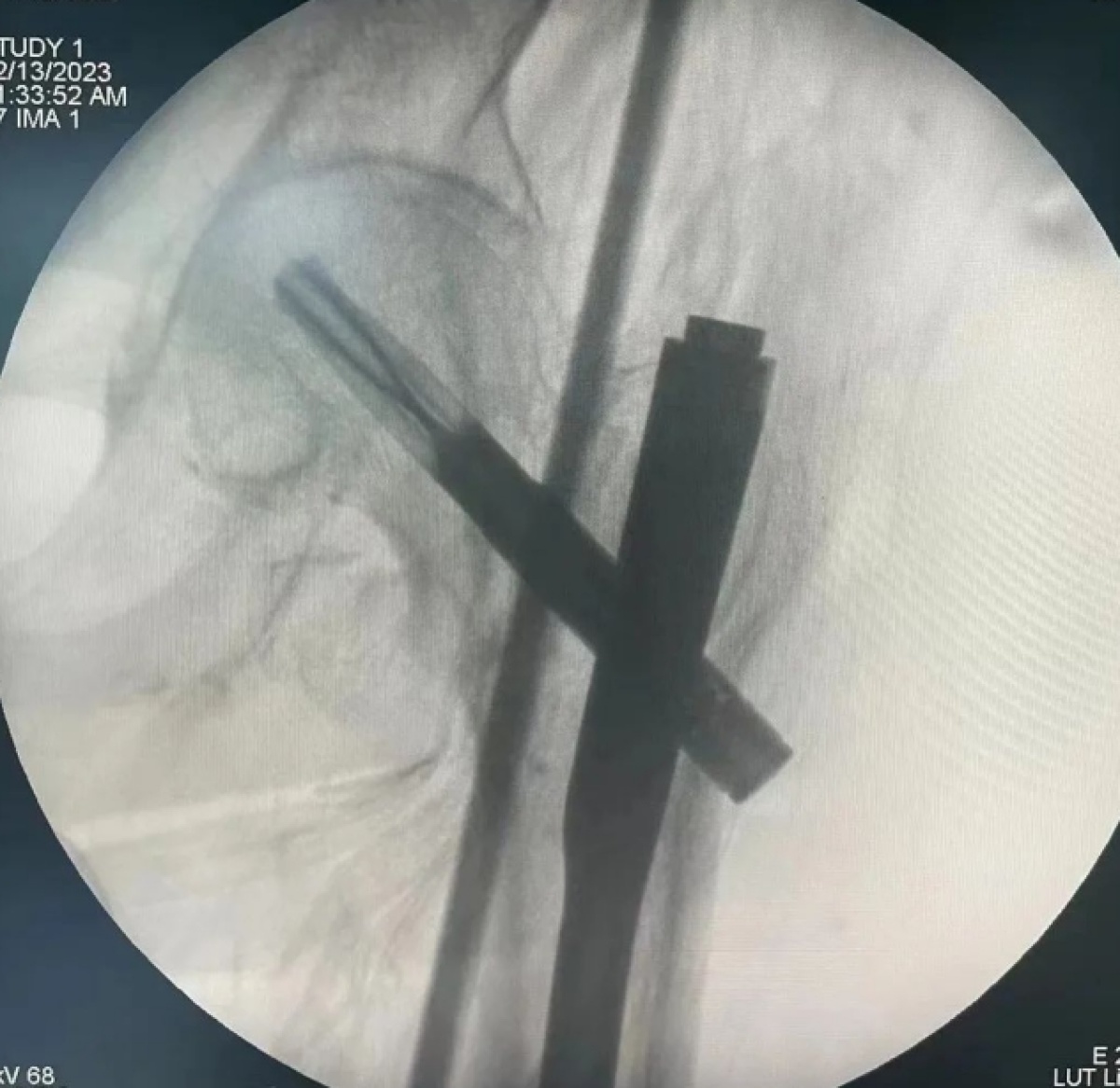 患者入室后,超聲引導下橈動脈穿刺置管實時監(jiān)測血壓,方便術(shù)中維持循環(huán)穩(wěn)定。麻醉科團隊為患者順利施行超聲引導下左側(cè)高位髂筋膜阻滯,減少椎管內(nèi)麻醉時側(cè)身擺體位的疼痛。該患者腰椎退行病變及骨質(zhì)增生嚴重,椎管內(nèi)麻醉穿刺困難,麻醉科團隊運用超聲引導下椎管內(nèi)穿刺技術(shù)尋找合適的路徑,做到一針到位。在骨五科、手術(shù)室、麻醉科等科室醫(yī)護團隊的通力配合下,成功為老人完成手術(shù)。手術(shù)過程順利,患者無疼痛等不適,術(shù)后平安返回病房。