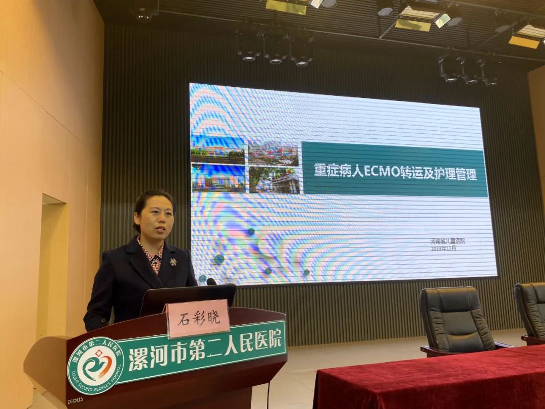 會(huì)議特邀河南省兒童醫(yī)院護(hù)理部主任、主任護(hù)師石彩曉教授為大家講授《重癥患兒ECMO轉(zhuǎn)運(yùn)及護(hù)理》。石主任圍繞ECMO轉(zhuǎn)運(yùn)團(tuán)隊(duì)的建設(shè)、適應(yīng)癥與禁忌癥等進(jìn)行深入探討和交流。