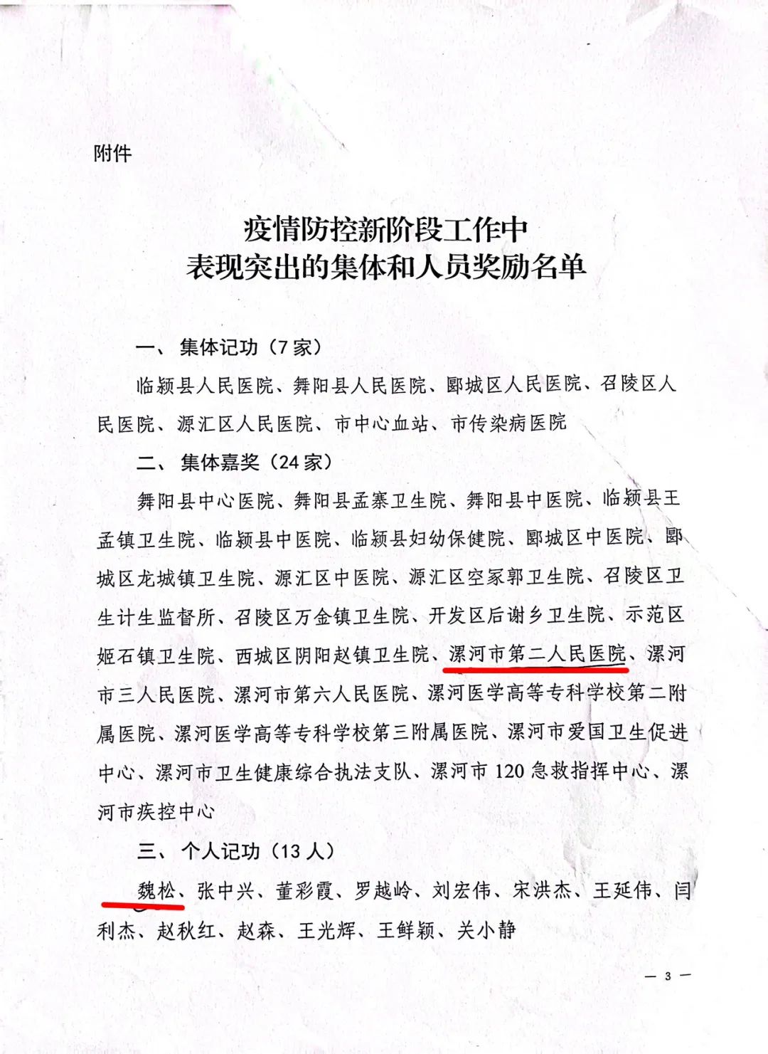 11月15日,漯河市人力資源和社會保障局對疫情防控新階段工作中表現(xiàn)突出的集體和個人進行表彰,市二院榮獲集體嘉獎獎勵。