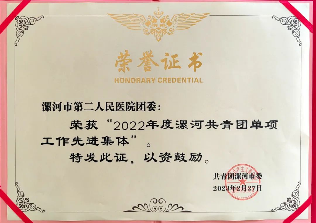 2月28日,共青團漯河市五屆十二次全委(擴大)會議召開,市二院團委因志愿服務工作被表彰為“2022年度漯河共青團單項工作先進集體”。