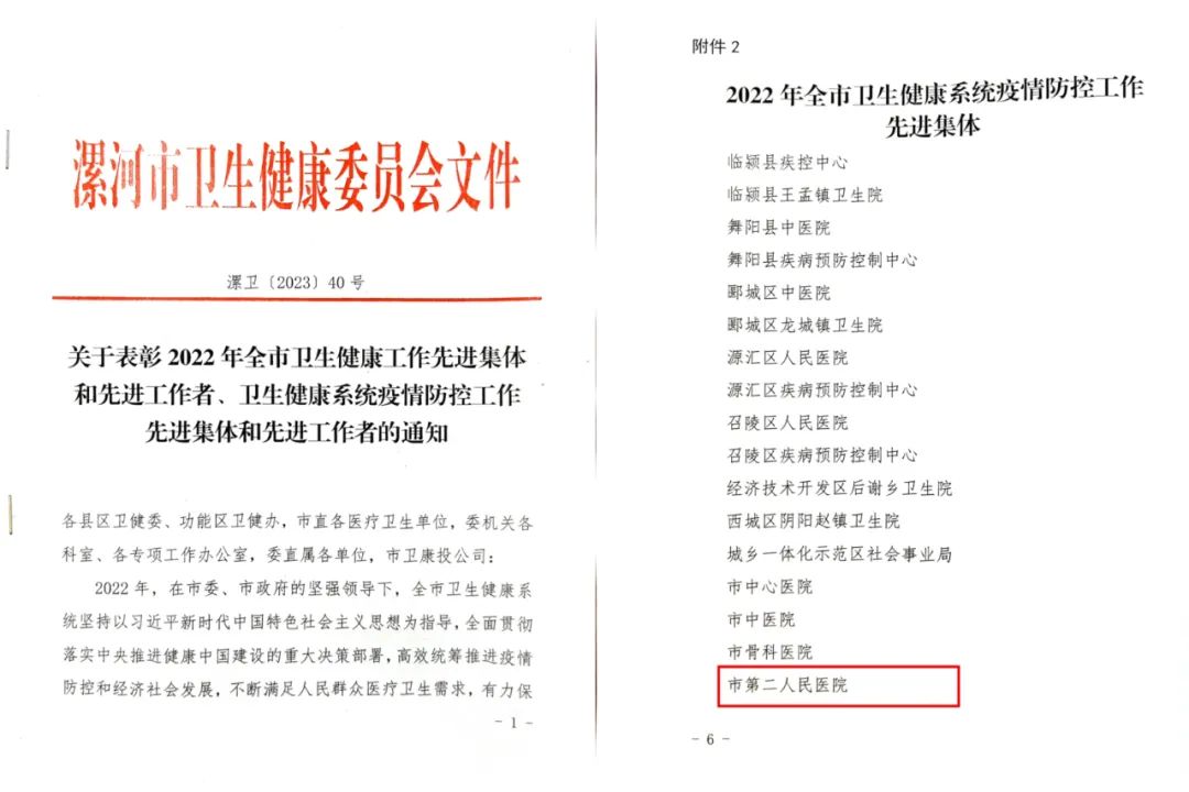 5月25日,市二院分別榮獲河南省2022年度“兩品一械”監(jiān)測工作先進單位、漯河市2022年度“兩品一械”監(jiān)測工作先進單位。
