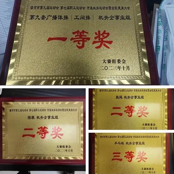 10月17日—21日,漯河市第九屆運動會、第七屆職工運動會、市直機關運動會暨全民健身大會在市體育中心拉開帷幕,市二院代表隊團結(jié)協(xié)作,奮勇爭先,共選派64名隊員組成代表隊參加了七個大項九個小項比賽項目,一舉奪得第九套廣播體操(工間操)機關企事業(yè)組一等獎、團體總分二等獎、優(yōu)秀組織獎,團體及個人獎等榮譽。