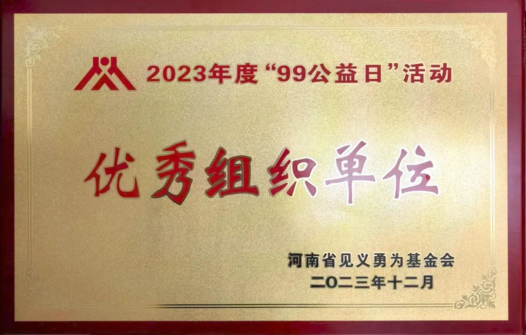 近日,市二院被河南省見義勇為基金會(huì)授予全省2023年“99公益日”活動(dòng)先進(jìn)單位榮譽(yù)稱號(hào)。