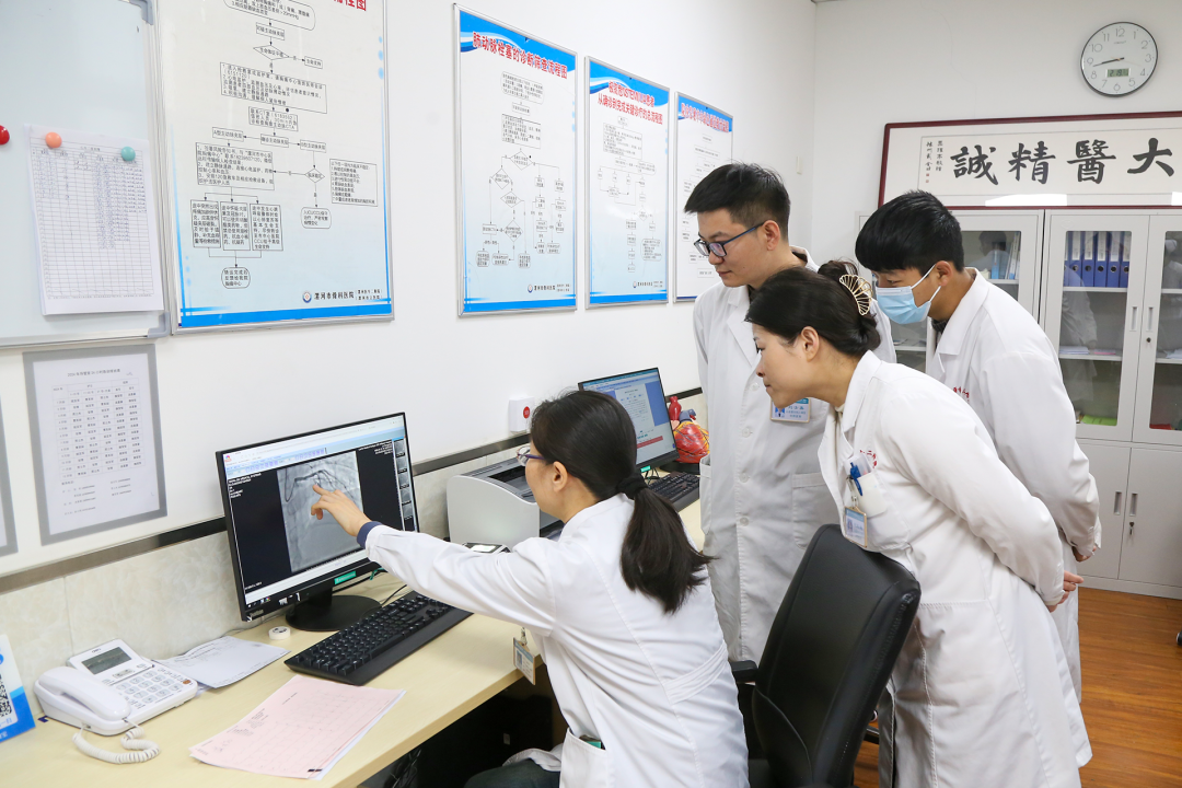 大年初五晚上,心血管內(nèi)科二病區(qū)堅(jiān)守崗位的郭晨陽(yáng)醫(yī)生共收治了7名患者,期間,他配合董艷彩主任,分別為一名31歲和一名38歲的年輕男性患者進(jìn)行了急診手術(shù),他們的共同特點(diǎn)都是長(zhǎng)期大量吸煙、熬夜。“消毒、穿刺、鞘管植入、導(dǎo)管到位……”10分鐘后,血管開(kāi)通!這些生死競(jìng)速的場(chǎng)景,在心內(nèi)科幾乎每一天都在上演。春節(jié)長(zhǎng)假,當(dāng)別人都在走親訪友歡度佳節(jié)時(shí),心內(nèi)科的醫(yī)護(hù)人員卻穿著近10公斤重的鉛衣,站到手術(shù)臺(tái)前,與死神競(jìng)速挽救患者生命。而他們所做的一切,只為讓急性心肌梗死的患者獲得新生,讓患者家庭獲得幸福感。