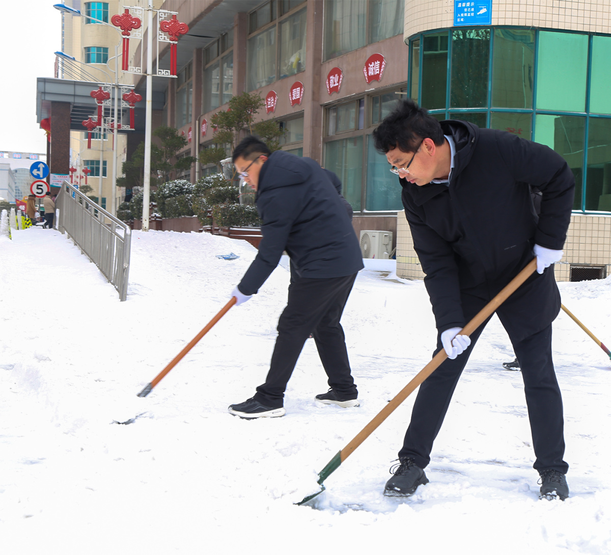 院內(nèi)掃雪結(jié)束后,院黨委書(shū)記柴運(yùn)洪、院長(zhǎng)李奎等領(lǐng)導(dǎo)班子成員,又來(lái)到位于北環(huán)淞江路的醫(yī)院分包路段開(kāi)展除雪。雖然戶外溫度低至零下,但大家無(wú)懼嚴(yán)寒,配合默契,迅速完成了清掃任務(wù),充分體現(xiàn)出該院作為三級(jí)綜合公立醫(yī)院的社會(huì)責(zé)任與擔(dān)當(dāng)。