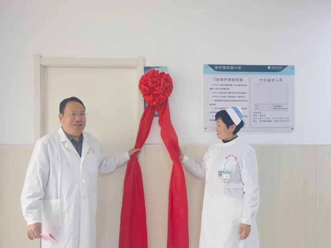 曹鵬克和趙春紅為靜脈治療護理門診開診進行揭牌。