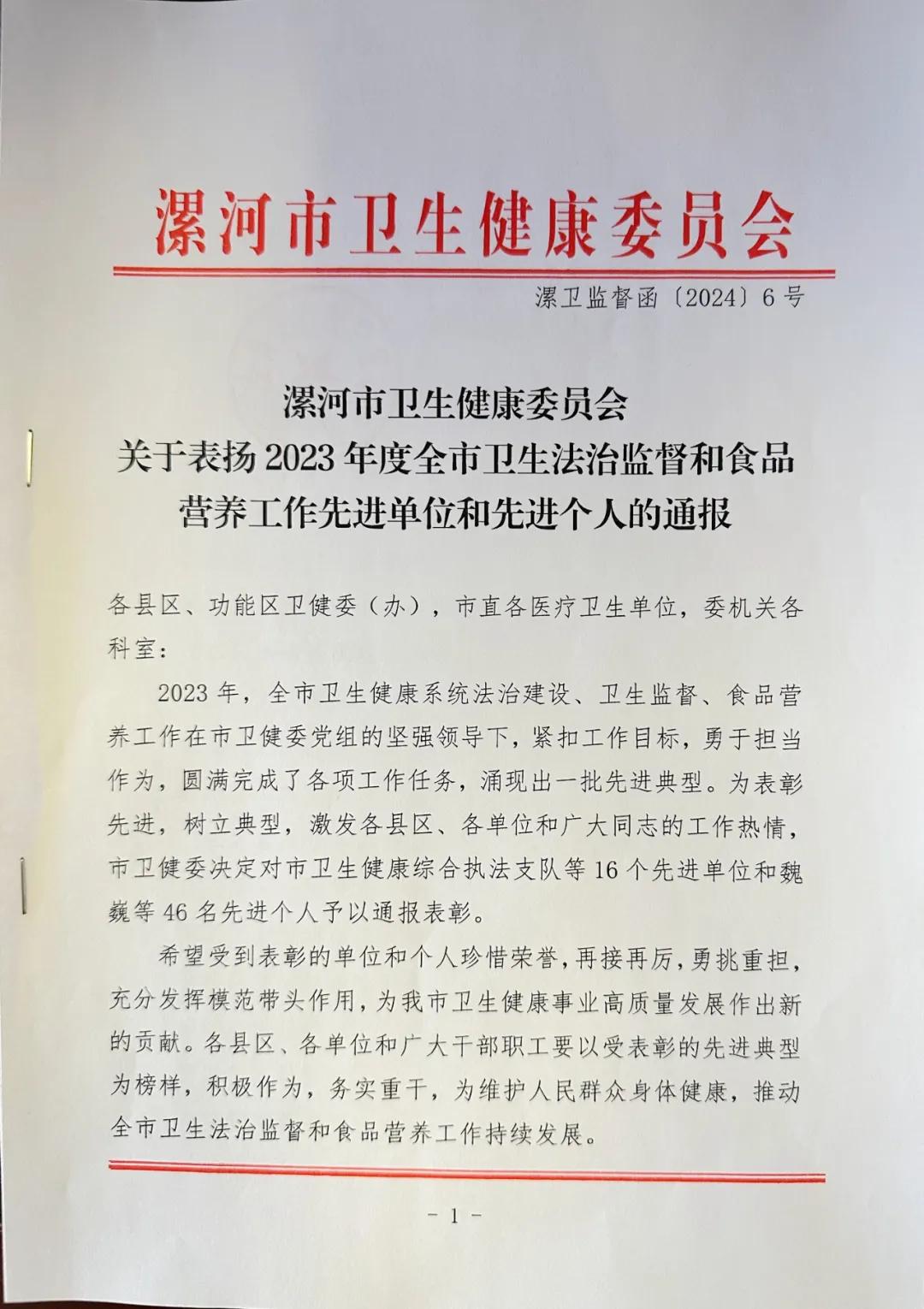 在3月20日召開的2024年度全市疾病預防控制、衛(wèi)生法治監(jiān)督暨食品營養(yǎng)工作會議上,市二院榮獲2023年度全市法治醫(yī)院建設工作先進單位,陳誠榮獲全市法治醫(yī)院建設工作先進個人。