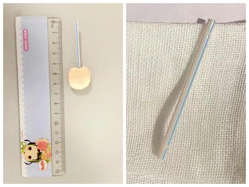 術(shù)前準(zhǔn)備一切就緒,在麻醉科、內(nèi)鏡室醫(yī)護團隊的通力配合下,無痛胃鏡下取異物開始,術(shù)中發(fā)現(xiàn)長約7cm的白色塑料棒橫在患兒的十二指腸球部,主治醫(yī)師楊楨小心翼翼地在內(nèi)鏡操作下抓住異物,一點點改變異物方向,最終順利將異物取出,患兒化險為夷。