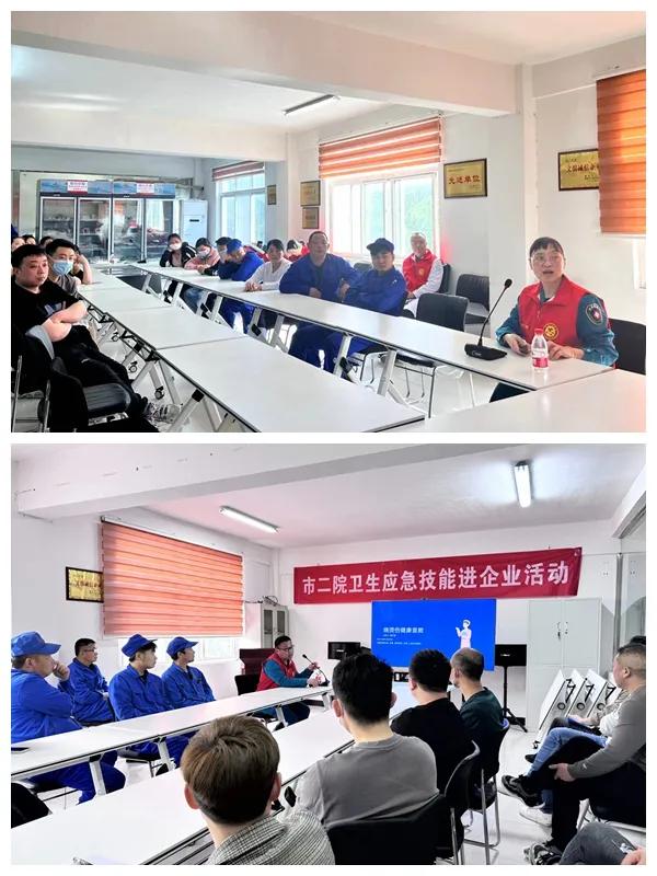 活動(dòng)內(nèi)容豐富多彩,分為理論授課和實(shí)踐操作兩部分。在理論教學(xué)環(huán)節(jié),市二院急診科主任李劍穎、副主任醫(yī)師周嚴(yán)威用通俗易懂的語(yǔ)言,深入淺出地講解了心肺復(fù)蘇、氣道異物排除(海姆立克急救法)及止血、包扎、固定、搬運(yùn)、灼燙傷等急救處理知識(shí)。此外,還針對(duì)企業(yè)實(shí)際情況,開(kāi)展了AED使用培訓(xùn)、手外傷(斷指)的急診急救,以及高血壓、冠心病、心肌梗塞以及腦血管疾病等內(nèi)科常見(jiàn)疾病的自救方法和預(yù)防措施。員工們聽(tīng)得津津有味,紛紛表示這些實(shí)用的知識(shí)讓他們受益匪淺,增強(qiáng)了自救互救應(yīng)急能力。