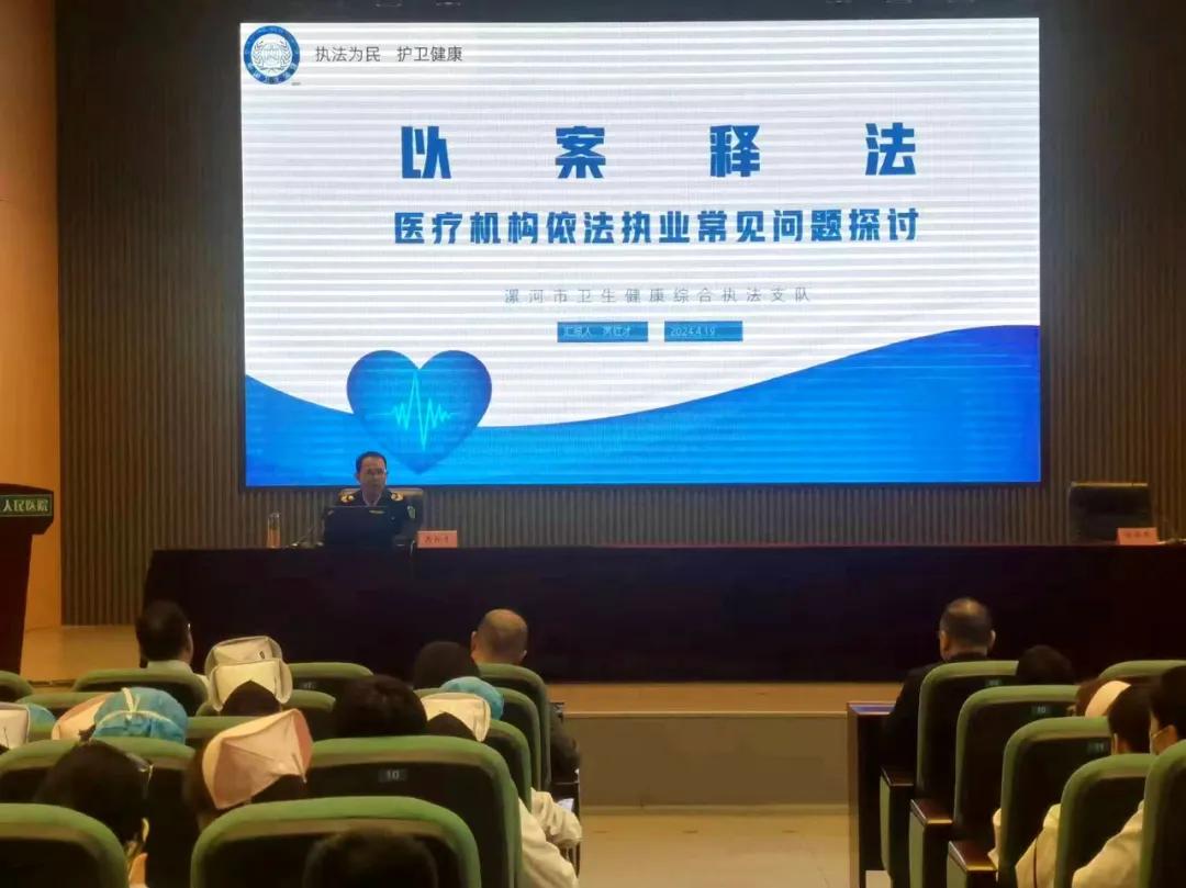 4月19日,市二院舉辦2024年度醫(yī)療衛(wèi)生法律法規(guī)專(zhuān)題培訓(xùn),特邀漯河市衛(wèi)生健康綜合執(zhí)法支隊(duì)副支隊(duì)長(zhǎng)芮紅才前來(lái)授課。各臨床科室醫(yī)、護(hù)、技等300余人到會(huì)學(xué)習(xí)。本次培訓(xùn)會(huì)由副院長(zhǎng)張曉東主持。