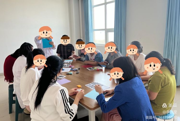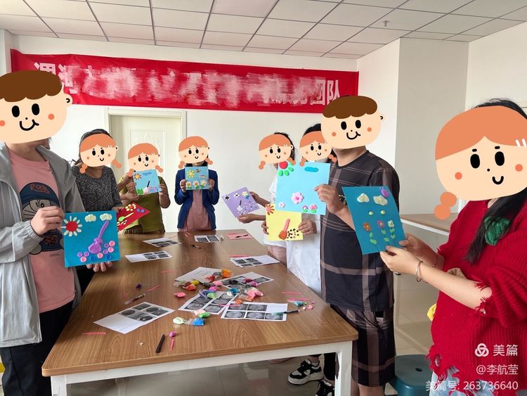 輔導(dǎo)員帶領(lǐng)同伴們一起完成關(guān)于“勞動最光榮”的主題粘土畫。