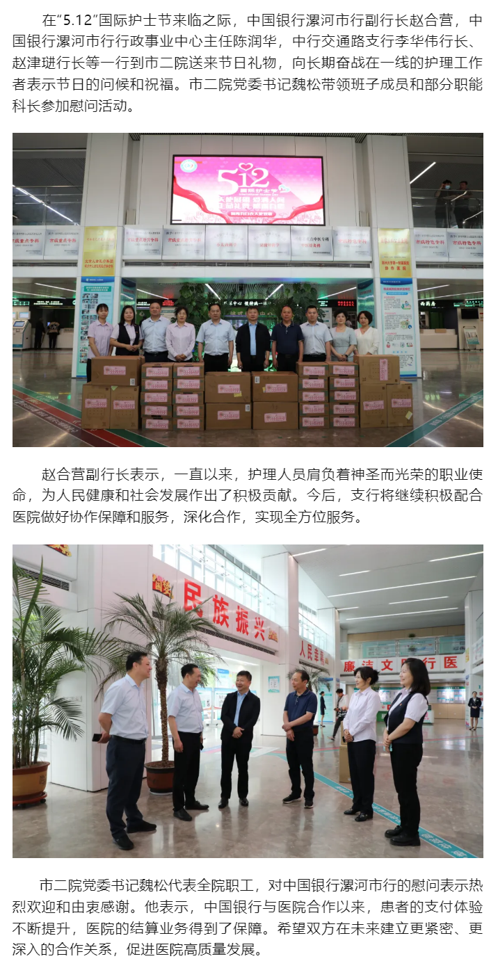 關愛天使 合作共建——中國銀行慰問致敬市二院白衣天使