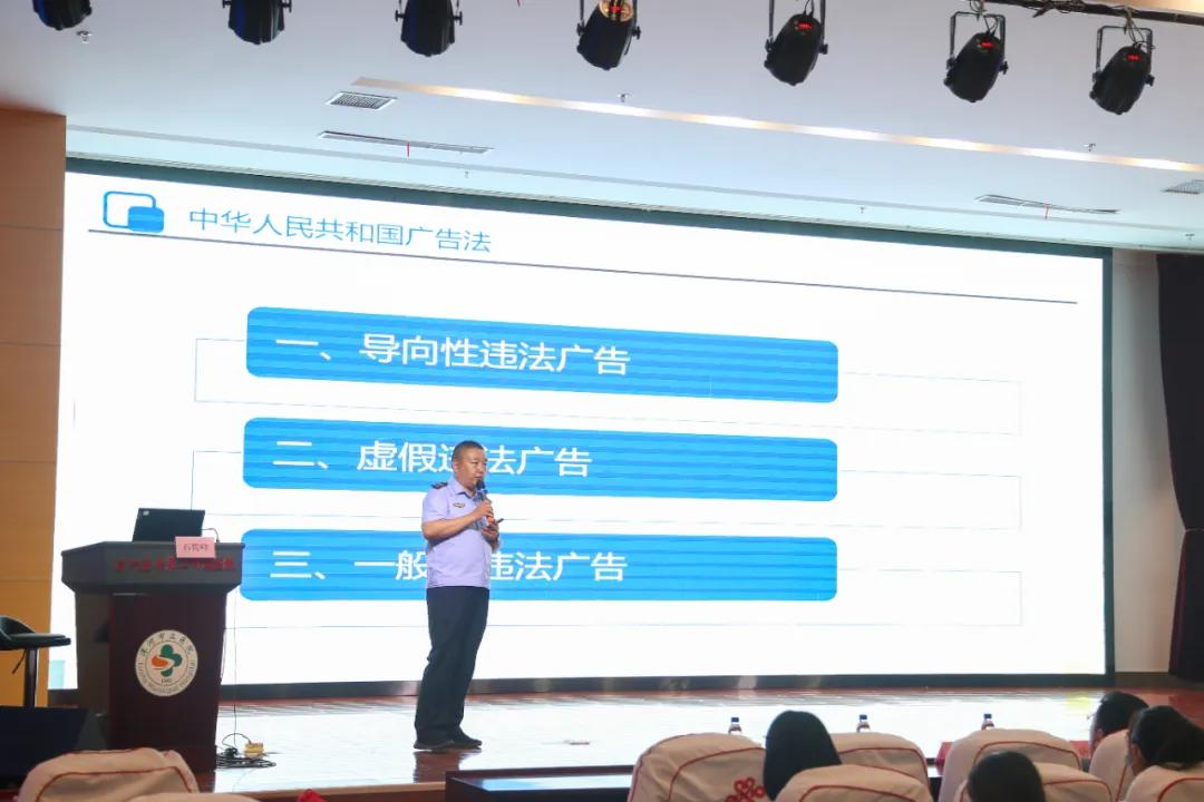 在隨后的授課過(guò)程中,石俊峰科長(zhǎng)圍繞醫(yī)療廣告的特征形式、禁區(qū)紅線(xiàn)、處罰標(biāo)準(zhǔn)、質(zhì)量提升、案例解讀等五個(gè)方面,對(duì)《廣告法》《醫(yī)療廣告管理辦法》等與醫(yī)療廣告相關(guān)的法律法規(guī),以及廣告用語(yǔ)規(guī)范、內(nèi)部審查要求、案例分析等進(jìn)行了詳細(xì)講解。既有理論深度,又通過(guò)大量詳實(shí)的案例分享寶貴經(jīng)驗(yàn),使大家受益匪淺。石俊峰提出,作為醫(yī)院通訊員,應(yīng)充分認(rèn)識(shí)醫(yī)院宣傳工作的重要性,既加強(qiáng)宣傳力度,又把握宣傳尺度,加強(qiáng)學(xué)習(xí),夯實(shí)本領(lǐng),不斷提高自身的宣傳能力與水平。