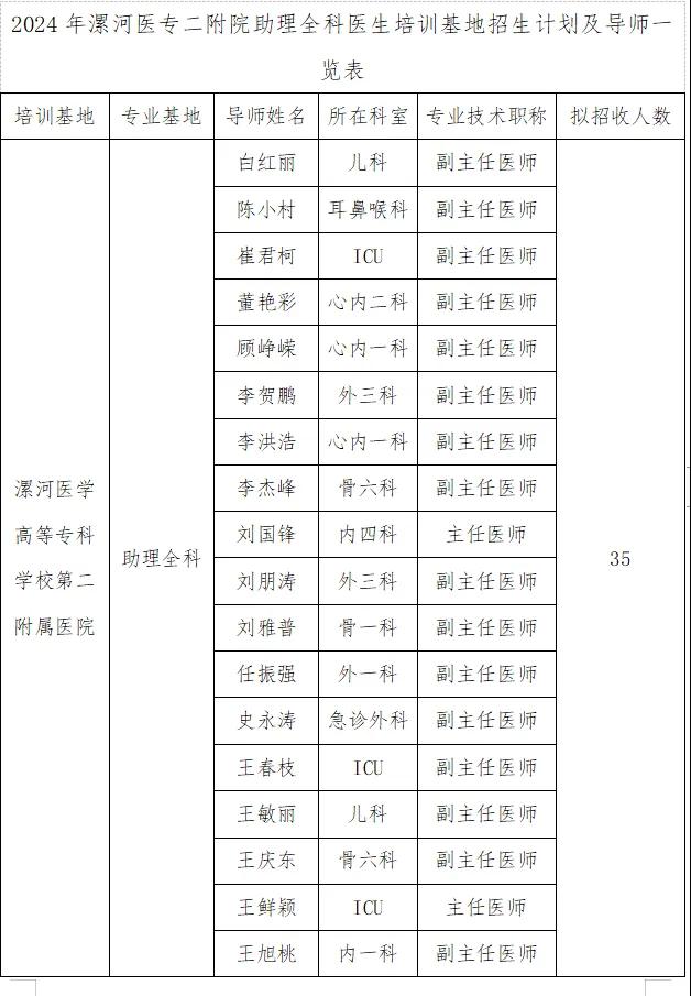 為深入貫徹落實(shí)《關(guān)于印發(fā)助理全科醫(yī)生培訓(xùn)實(shí)施意見(jiàn)(試行)的通知》(國(guó)衛(wèi)科教發(fā)〔2016〕14 號(hào)),根據(jù)《河南省衛(wèi)生健康委關(guān)于做好2024年助理全科醫(yī)生培訓(xùn)招收工作的通知》(豫衛(wèi)科教函〔2024〕19號(hào))要求,結(jié)合本院實(shí)際,現(xiàn)制定漯河醫(yī)學(xué)高等專(zhuān)科學(xué)校第二附屬醫(yī)院2024年助理全科醫(yī)生培訓(xùn)招收方案如下: