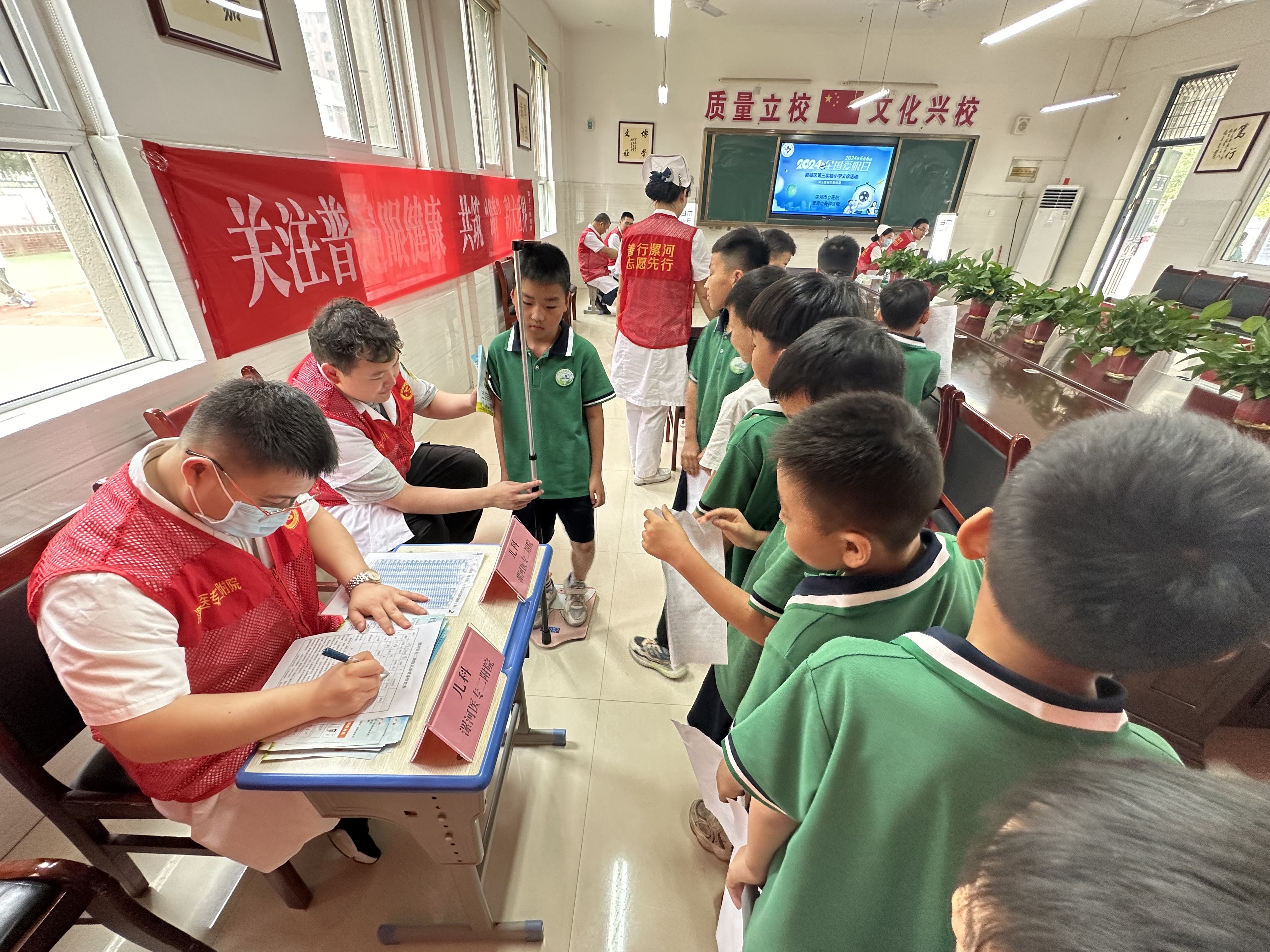 (記者王明杰 通訊員韓書環(huán))第29個全國“愛眼日”來臨之際,為提高青少年眼健康水平、普及科學(xué)用眼知識,助力學(xué)生健康成長,6月5日下午,漯河市骨科醫(yī)院(漯河醫(yī)專二附院、漯河市立醫(yī)院)社會工作部積極協(xié)調(diào)組織兒科、眼科、五官科等醫(yī)療專家志愿者到郾城區(qū)第三實驗小學(xué)開展大型義診活動。