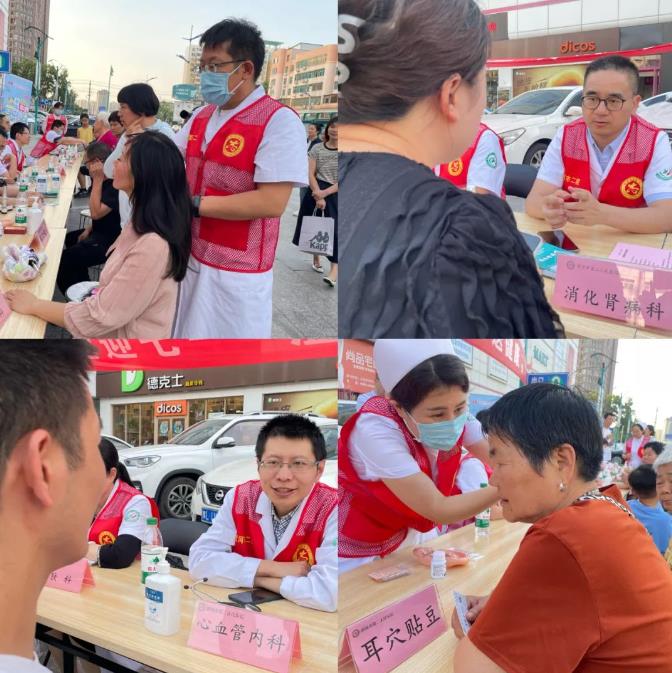 現(xiàn)場(chǎng)氣氛熱烈,前來(lái)咨詢和問(wèn)診的社區(qū)居民及路人絡(luò)繹不絕,市二院放療科、康復(fù)科、老年醫(yī)學(xué)科、心內(nèi)科、皮膚科、眼科、消化腎病科等20余名黨員志愿者們?yōu)榫用駛兲峁┟赓M(fèi)測(cè)血壓、測(cè)血糖及健康咨詢;對(duì)他們提出的疑問(wèn)進(jìn)行耐心解答,并詳細(xì)詢問(wèn)其身體狀況和既往病史,科普相關(guān)知識(shí),積極引導(dǎo)大家科學(xué)就醫(yī)、合理用藥,宣傳倡導(dǎo)健康生活方式,增強(qiáng)自我保健意識(shí)。