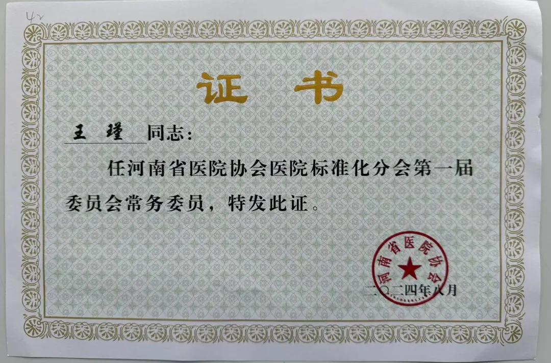 漯河市二院院長(zhǎng)王瑾當(dāng)選河南省醫(yī)院協(xié)會(huì)醫(yī)院標(biāo)準(zhǔn)化管理分會(huì)常務(wù)委員