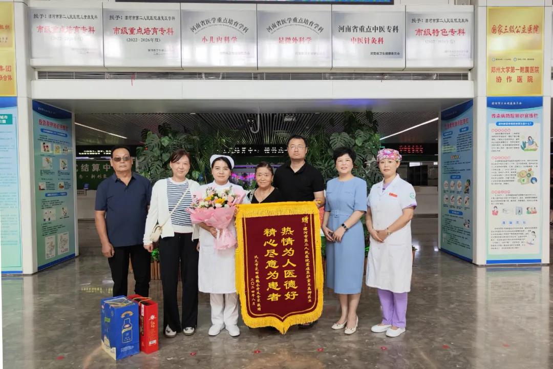 8月23日,來(lái)自鞏義的患者家屬一行四人攜鮮花、錦旗、禮品,驅(qū)車(chē)200公里到市二院,找到該院副院長(zhǎng)劉橋和重癥醫(yī)學(xué)科護(hù)士長(zhǎng)蔡新華直接表達(dá)來(lái)意:我們要給貴院重癥醫(yī)學(xué)科護(hù)士王美娜“送禮”,并希望院領(lǐng)導(dǎo)一定要好好表?yè)P(yáng)她:“要是沒(méi)有她,我們都不敢想會(huì)有啥后果!”