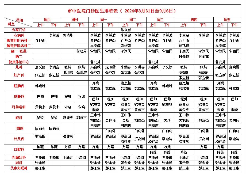 漯河市中醫(yī)院門診醫(yī)生排班表