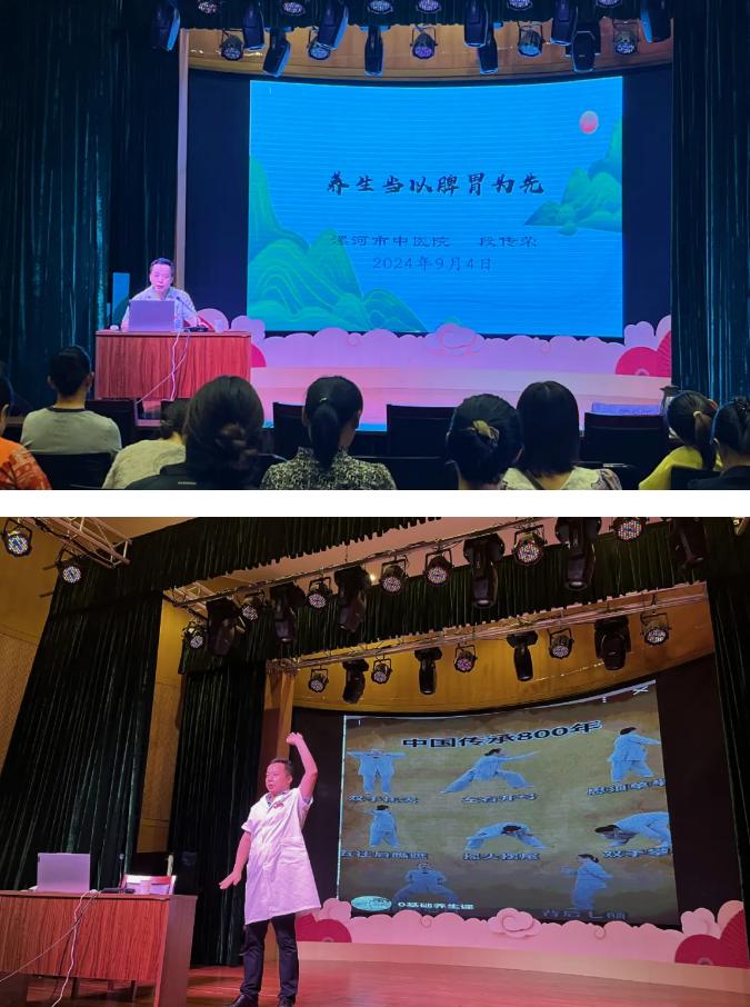 在市文化館,市中醫(yī)院健康宣講團段傳榮主任就“養(yǎng)生當以脾胃為先”為題,針對中醫(yī)養(yǎng)生的好處、養(yǎng)生為什么要先養(yǎng)脾胃、什么食療對應(yīng)什么問題等方面做了詳細的講解;指出常見的脾胃疾病預防和調(diào)理方法,包括合理的飲食搭配、規(guī)律的作息時間、適度的運動以及情志的調(diào)節(jié)等。參與講座的職工認真聽講,并記錄重點內(nèi)容,積極與專家進行互動交流。