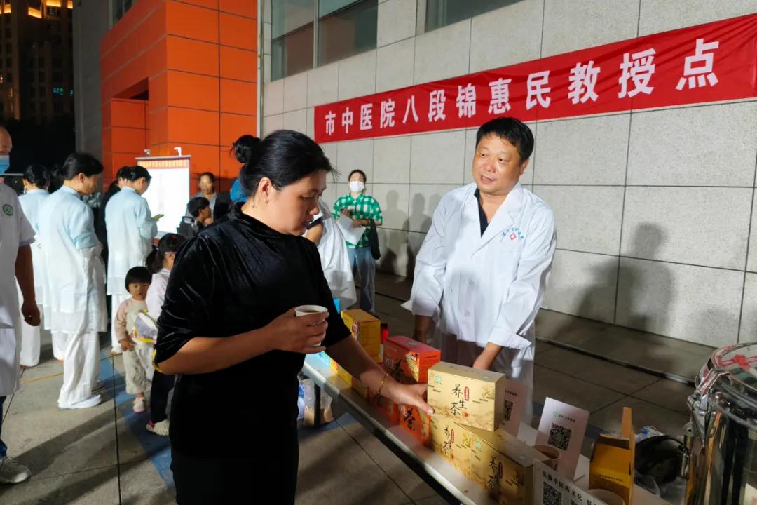 夜市現(xiàn)場(chǎng)還設(shè)置了中醫(yī)特色療法體驗(yàn)區(qū),耳穴貼壓、穴位貼敷、火龍罐、艾灸、小兒推拿等中醫(yī)外治療法引來(lái)群眾體驗(yàn),讓大家切身感受中醫(yī)藥文化的獨(dú)特魅力。還有八段錦現(xiàn)場(chǎng)教學(xué),大爺大媽,小孩們參與跟練,健康身體動(dòng)起來(lái)。