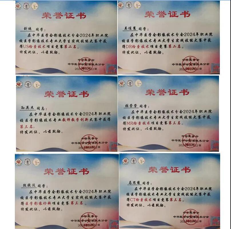 其中,吳佳慧、劉迪同學分別榮獲DR檢查技術和超聲組第二名,張瑩瑩、馬思萌、段驍汶同學分別榮獲MRI和CT檢查技術、醫(yī)學影像診斷組第三名,孫英杰老師榮獲教師優(yōu)秀創(chuàng)新大賽第三名,參賽團隊榮獲團體項目競賽第三名,優(yōu)秀的成績贏得了大賽評委和參賽同道的廣泛贊譽。這也是繼2018年首次參加該賽事后,漯河醫(yī)學高等??茖W校第三次參加這項全國性的醫(yī)學影像技術專業(yè)實踐技能大賽。