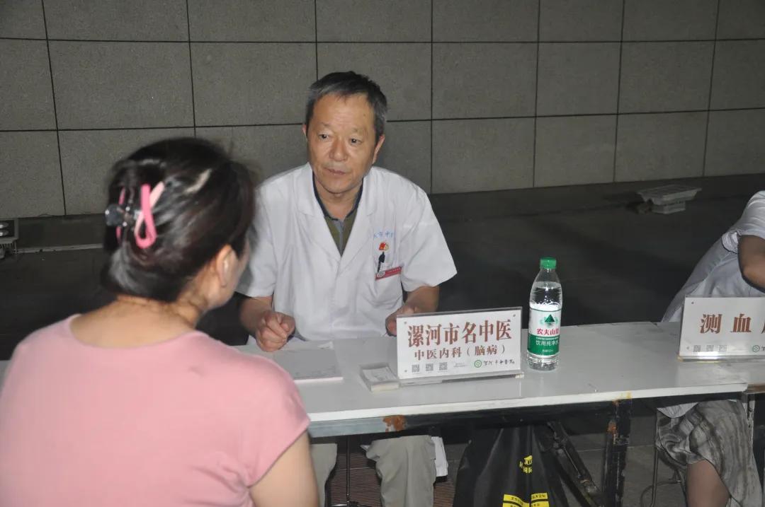 漯河市中醫(yī)院紀委書記劉家棟帶領(lǐng)漯河市名中醫(yī)申明軒、郭清華、宋莉娟及中醫(yī)內(nèi)科、針灸推拿、骨眼科、兒科等中醫(yī)專家走進夜市,為群眾把脈問診,耐心答疑,開具健康處方并給予用藥指導,進行中醫(yī)藥養(yǎng)生知識普及。
