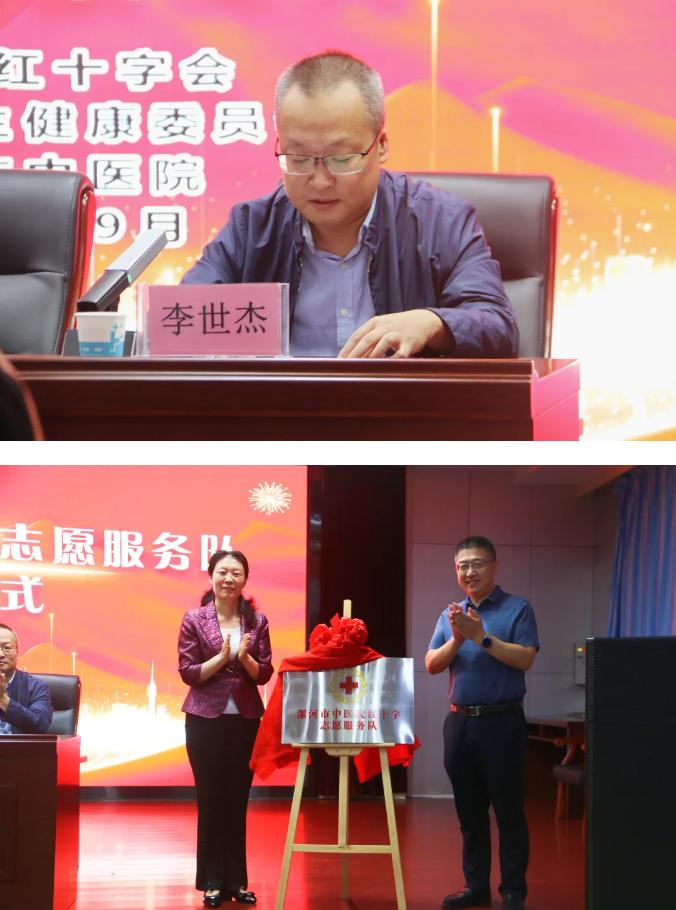 李世杰宣讀《漯河市紅十字會關(guān)于同意成立漯河市中醫(yī)院紅十字志愿服務(wù)隊的批復(fù)》文件。孫潁華、王向良為漯河市中醫(yī)院紅十字志愿服務(wù)隊揭牌。孫潁華向漯河市中醫(yī)院紅十字志愿服務(wù)隊授旗。漯河市中醫(yī)院紅十字志愿服務(wù)隊代表李強進(jìn)行表態(tài)發(fā)言并作出承諾,將充分發(fā)揮紅十字志愿者的優(yōu)勢,為更多需要幫助的人提供醫(yī)療援助和志愿服務(wù)。