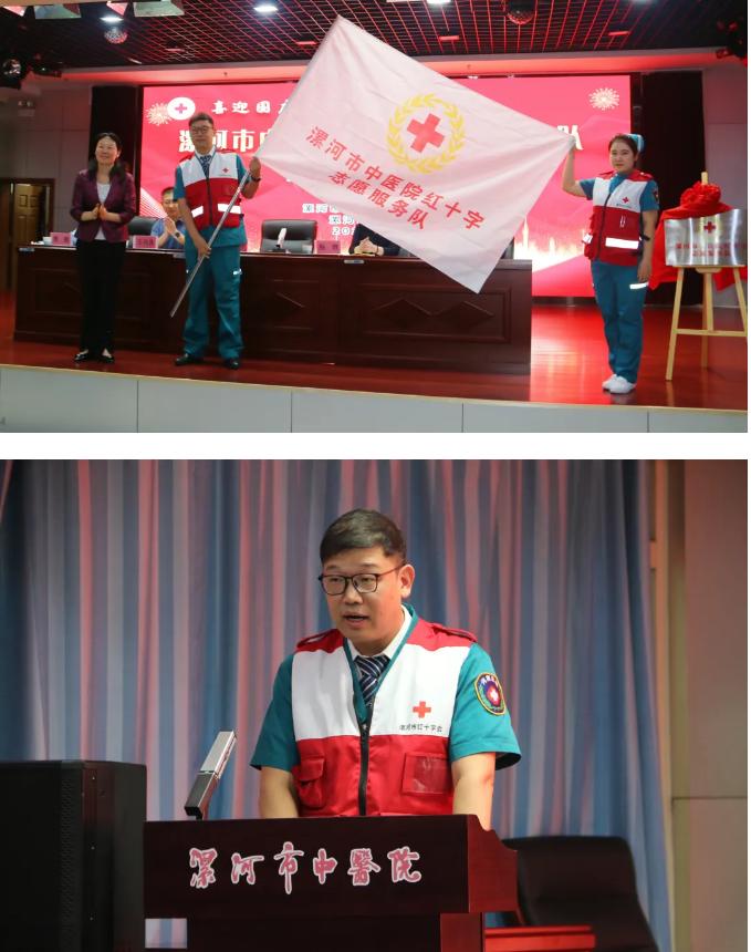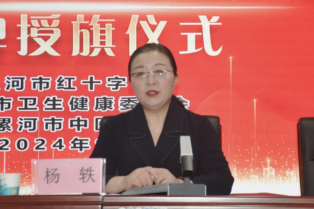 為積極響應(yīng)社會公益號召,弘揚紅十字精神,促進(jìn)醫(yī)療衛(wèi)生與志愿服務(wù)深度融合,2024年9月25日上午,市紅十字會、市衛(wèi)健委聯(lián)合市中醫(yī)院在醫(yī)院門診四樓學(xué)術(shù)報告廳隆重舉辦“喜迎國慶 志愿同行——漯河市中醫(yī)院紅十字志愿服務(wù)隊揭牌授旗儀式”。市紅十字會黨組書記、常務(wù)副會長孫潁華,市衛(wèi)健委黨組副書記、副主任王向良,市中醫(yī)院黨委書記楊軼,市中醫(yī)院黨委副書記、副院長楚勝,市紅十字會黨組成員、副會長李世杰出席揭牌授旗儀式。各縣區(qū)、功能區(qū)紅十字會負(fù)責(zé)同志、市直醫(yī)療衛(wèi)生機構(gòu)和漯河醫(yī)專各附屬醫(yī)院分管領(lǐng)導(dǎo)以及市中醫(yī)院志愿者職工代表近200人參加。會議由楚勝主持。