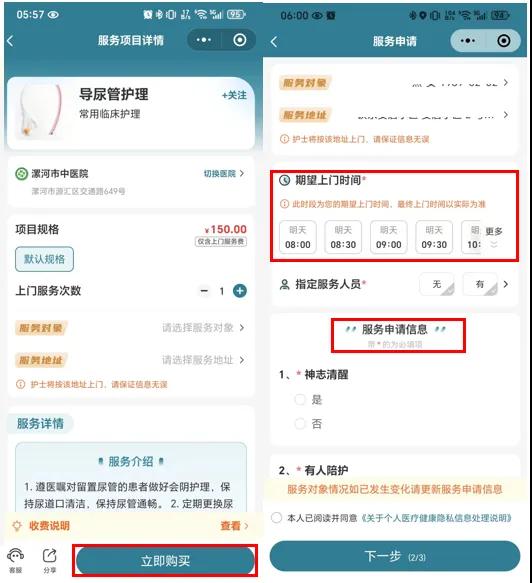 三、閱讀服務(wù)須知,點(diǎn)擊“立即購買”;選擇預(yù)約時(shí)間,填寫服務(wù)申請信息。