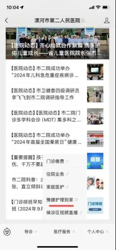 2.可以關(guān)注漯河市第二人民醫(yī)院微信公眾號(hào),進(jìn)入公眾號(hào)頁(yè)面。
