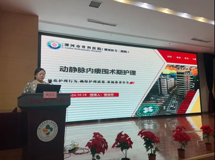 精心的圍手術期護理,可以減少手術并發(fā)癥,提高手術成功率,曹慧芳主任以《動靜脈內(nèi)瘺圍術期護理》為題詳細闡述了患者評估與準備、手術過程與護理配合、術后護理與觀察、藥物治療與護理、心理護理等內(nèi)容。