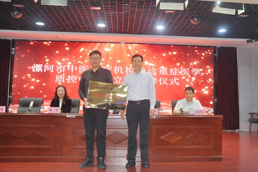 漯河市衛(wèi)健委四級(jí)調(diào)研員黃紅亮宣讀《關(guān)于變更市級(jí)中醫(yī)醫(yī)療機(jī)構(gòu)急診重癥醫(yī)學(xué)質(zhì)量控制中心主任、副主任、專職秘書名單的通知》并現(xiàn)場(chǎng)授牌。