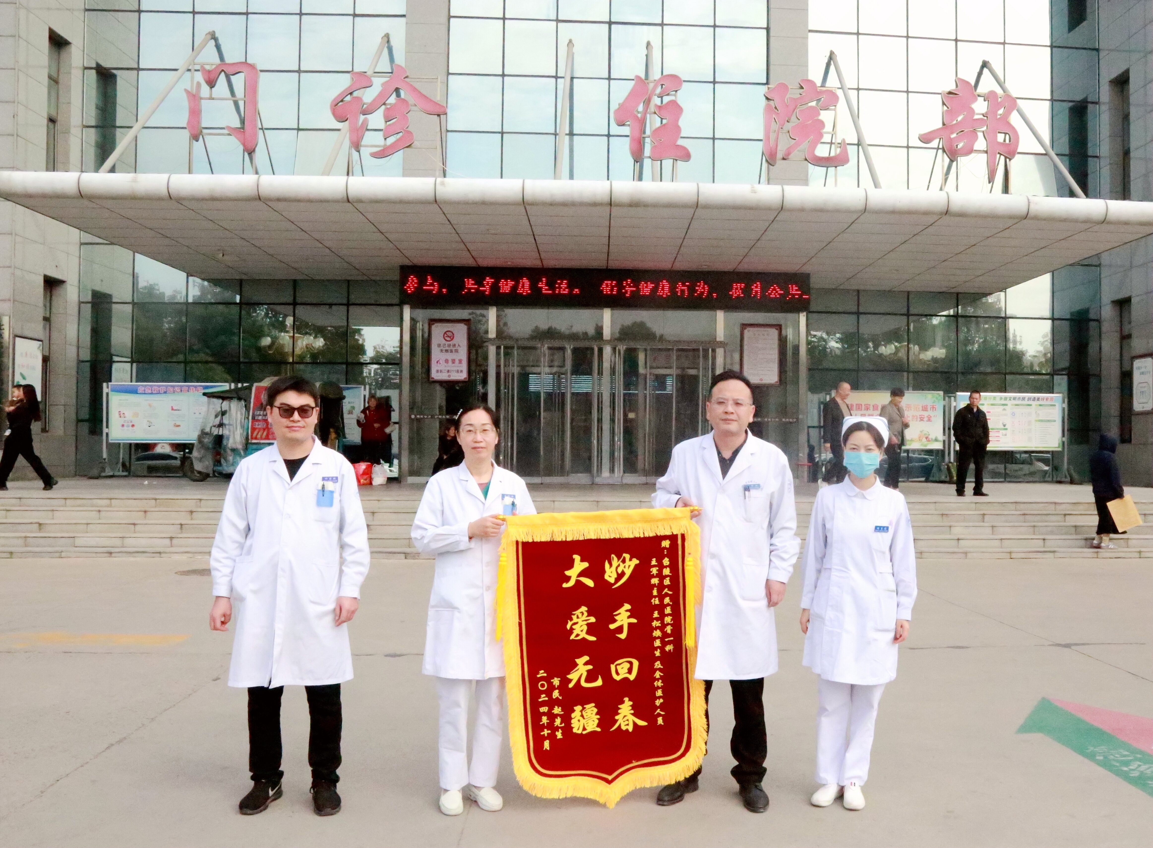 “醫(yī)生,今天我就能順利出院了,真是太感謝你們了!”10月25日上午,召陵區(qū)人民醫(yī)院,一位即將出院的患者為骨科一病區(qū)送來一面上書金燦燦“妙手回春 大愛無疆”大字的錦旗,感謝全體醫(yī)護(hù)人員的精心醫(yī)治。
