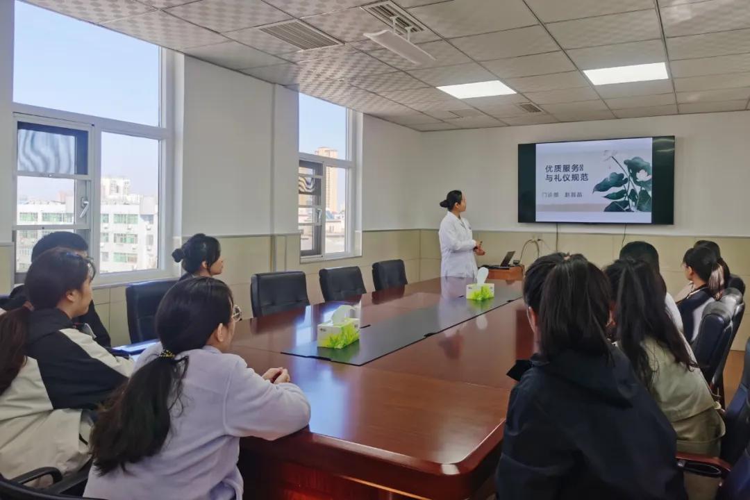 趙晶晶護(hù)士長(zhǎng)對(duì)見習(xí)人員進(jìn)行《優(yōu)質(zhì)服務(wù)和禮儀規(guī)范》的培訓(xùn),提升見習(xí)人員的形象素質(zhì)。