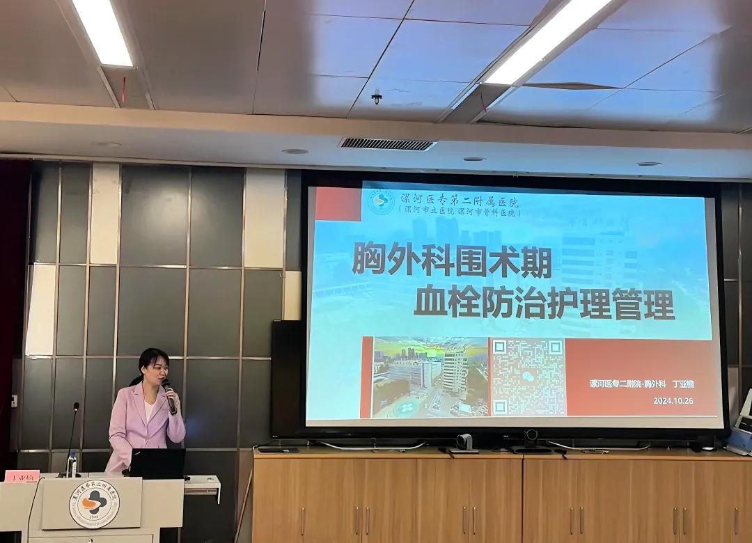 丁亞楠護(hù)士長以《胸外科圍術(shù)期血栓防治護(hù)理管理》為題,講述胸外科血栓防治護(hù)理管理是確?;颊邍g(shù)期安全的重要環(huán)節(jié),需要貫穿患者術(shù)前、術(shù)中、術(shù)后及出院后的全過程,通過全面的評估、個(gè)性化的預(yù)防措施、密切的病情觀察和有效的抗凝治療手段,降低血栓形成的風(fēng)險(xiǎn),確保患者的安全。醫(yī)護(hù)不分家,醫(yī)療團(tuán)隊(duì)及護(hù)理團(tuán)隊(duì)的共同發(fā)展才能促進(jìn)??平ㄔO(shè)的發(fā)展,丁亞楠護(hù)士長促使胸外護(hù)理團(tuán)隊(duì)的??平ㄔO(shè),對VTE的防治管理規(guī)范管理,為胸外的發(fā)展提供助力。