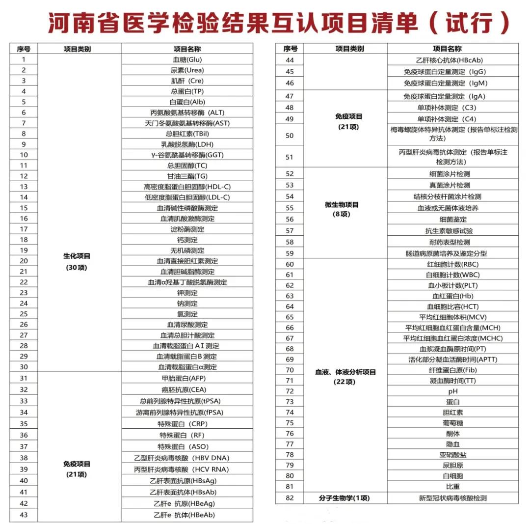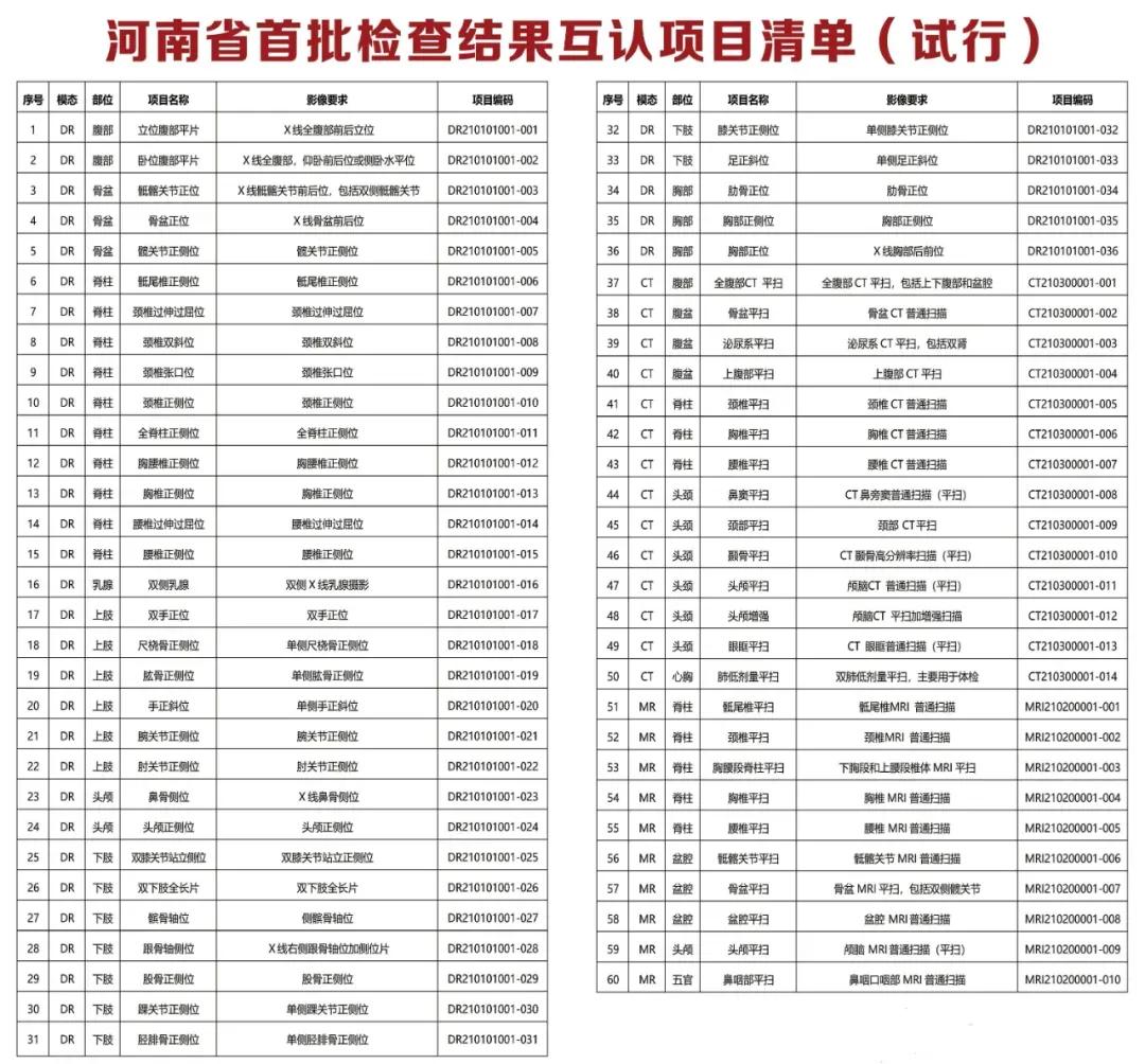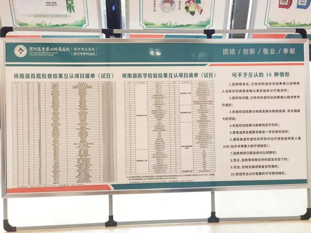 在門診大廳、檢驗大廳、簡易門診等就診區(qū)域和位點擺放了“河南省首批檢查結(jié)果互認項目清單”“河南省醫(yī)學(xué)檢驗結(jié)果互認項目清單”等詳細內(nèi)容,持續(xù)加強宣教和講解,切實把好事辦好、實事辦實。