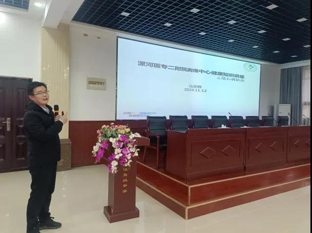 講座現(xiàn)場,馬彥輝為該校教職工科普心血管疾病相關知識,從冠心病的概況、癥狀與性質、急性心肌梗死的形成以及ACS的急救措施等內容進行了詳細講解。針對心血管疾病的危險因素,重點與在場人員分享了冠心病的預防措施,介紹了飲食健康、控制體重、定期運動、減輕生活壓力及戒煙限酒等對于降低心血管疾病風險的重要性。
