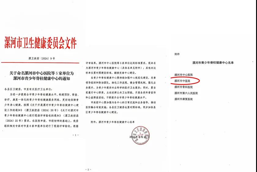 (漯河市中醫(yī)院獲批“漯河市青少年脊柱健康中心”)