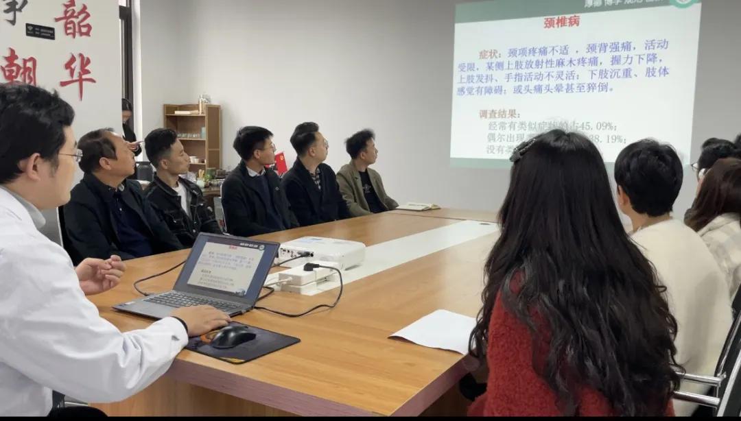 在同步進(jìn)行的健康科普進(jìn)企業(yè)現(xiàn)場,市二院中醫(yī)針灸科副主任趙劍鋒針對電商從業(yè)者長期久坐的職業(yè)特點(diǎn),重點(diǎn)講解了頸椎病、腰椎病等疾病的預(yù)防和應(yīng)對方法,并從日常飲食、科學(xué)的鍛煉方法、緩解疲勞的小妙招、心理壓力的釋放途徑與參會人員進(jìn)行了分享。參會職工們跟隨講解邊聽邊學(xué),現(xiàn)場氣氛熱烈,活動效果超出預(yù)期。