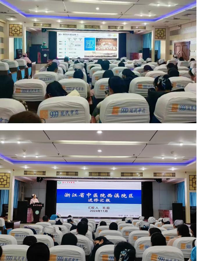 接著,急診科護士長段銳、兒童康復科護士長王莉10月份作為護士長進修的第三組赴浙江省中醫(yī)院進修學習。兩位從管理亮點、護理技術(shù)、文化建設、服務流程等方面進行了詳細匯報,并結(jié)合各自的專業(yè)特點和學習內(nèi)容,從自身實踐、學習收獲、未來發(fā)展等方面分享了學習成果。分享中的新知識、新技術(shù)和先進的理念,讓大家耳目一新,紛紛表示拓寬了工作思路,獲益匪淺。