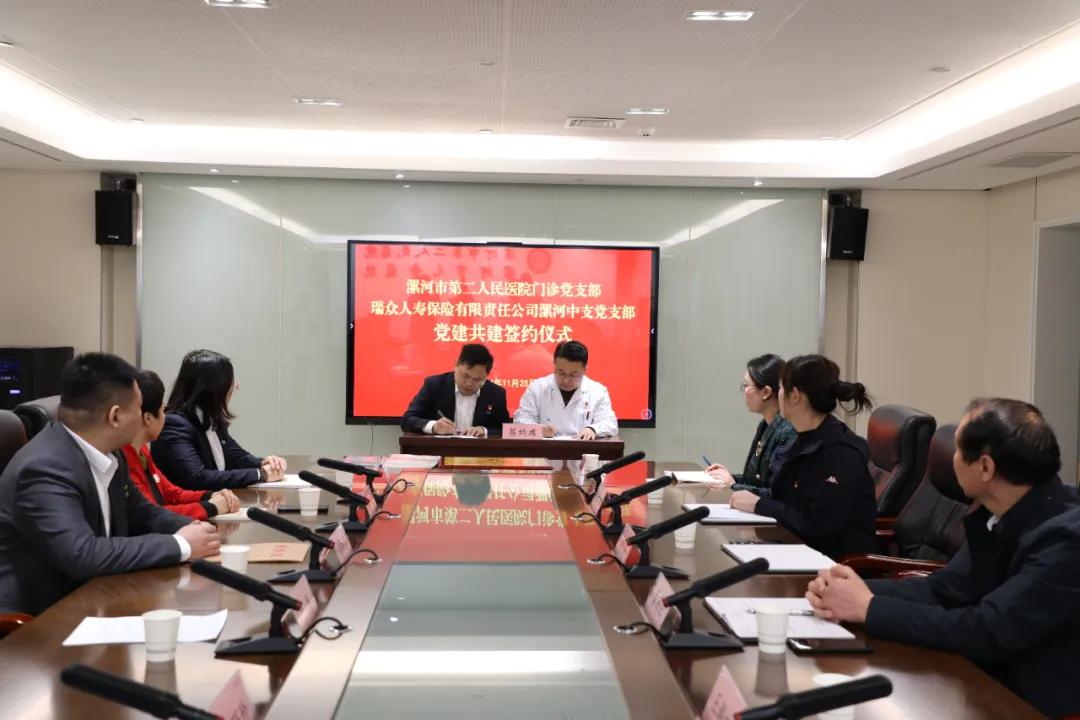 漯河市二院門診黨支部與瑞眾人壽保險有限責任公司漯河中支黨支部舉行黨建共建簽約活動