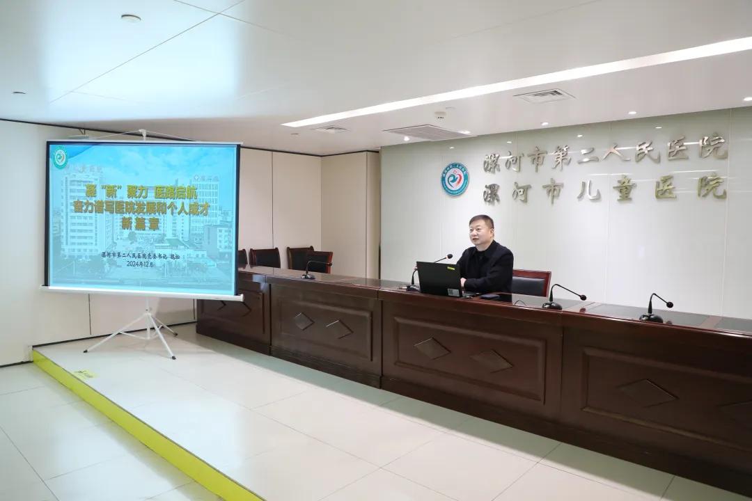 黨委書(shū)記魏松以《凝“新”聚力 “醫(yī)”路啟航 奮力譜寫(xiě)醫(yī)院發(fā)展和個(gè)人成才新篇章》為題,從醫(yī)院的發(fā)展歷程、學(xué)科建設(shè)以及未來(lái)期望等方面為新入職人員上了精彩的第一課。