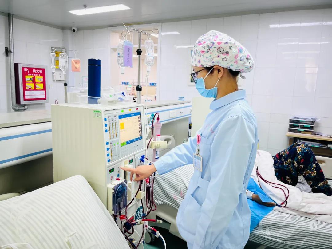 血液凈化室是一個(gè)安靜的地方。透析機(jī)發(fā)出的“嘀嗒”聲和患者的呼吸聲成為這里獨(dú)特的旋律。每天早上7點(diǎn),我會準(zhǔn)時(shí)到崗,檢查機(jī)器、配制抗凝劑等,做好患者上機(jī)前的準(zhǔn)備工作;透析過程中,認(rèn)真監(jiān)測患者生命體征……對每一個(gè)步驟都嚴(yán)謹(jǐn)細(xì)致。在這個(gè)沒有硝煙的戰(zhàn)場上,我時(shí)刻保持警惕,為患者健康盡心盡力。