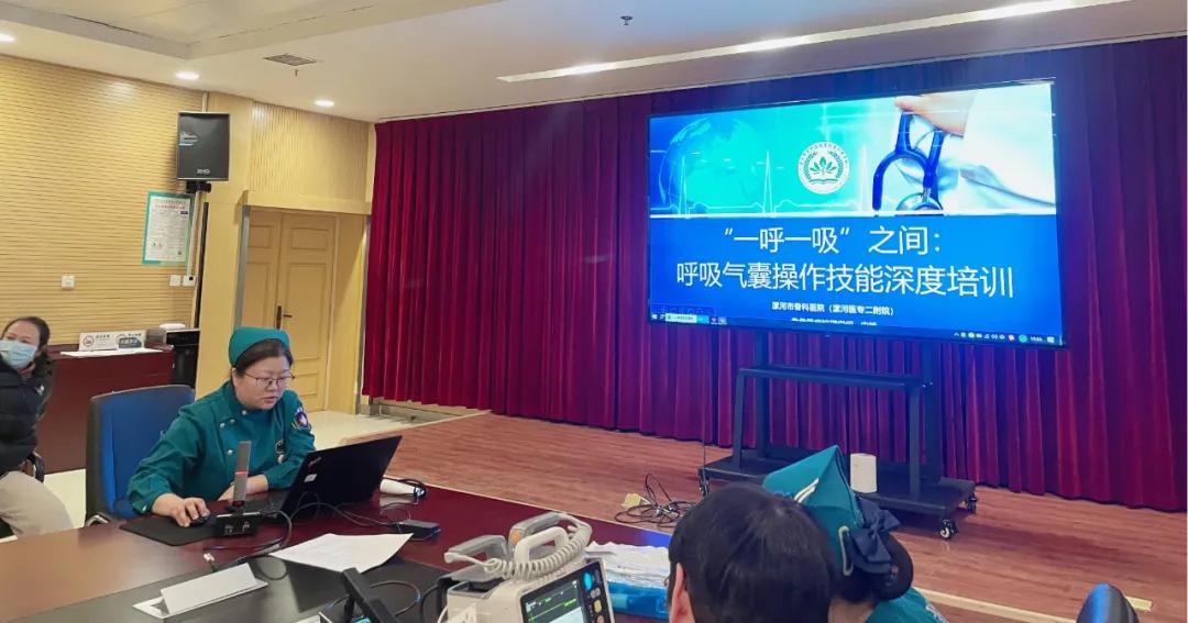 應(yīng)鴿老師則聚焦《“一呼一吸”之間:呼吸氣囊操作技能深度培訓(xùn)》,對(duì)簡(jiǎn)易呼吸器的部件識(shí)別、結(jié)構(gòu)原理、使用注意事項(xiàng)等進(jìn)行細(xì)致入微的講解與演示。從球囊完整性檢查,到氧氣管道連接,再到通氣操作的精準(zhǔn)手法,逐一示范,明確強(qiáng)調(diào)其核心作用在于保障患者氧供,且使用前務(wù)必確保呼吸器完好、氣道通暢,使學(xué)員們?cè)鷮?shí)掌握了呼吸氣囊的操作要領(lǐng)。