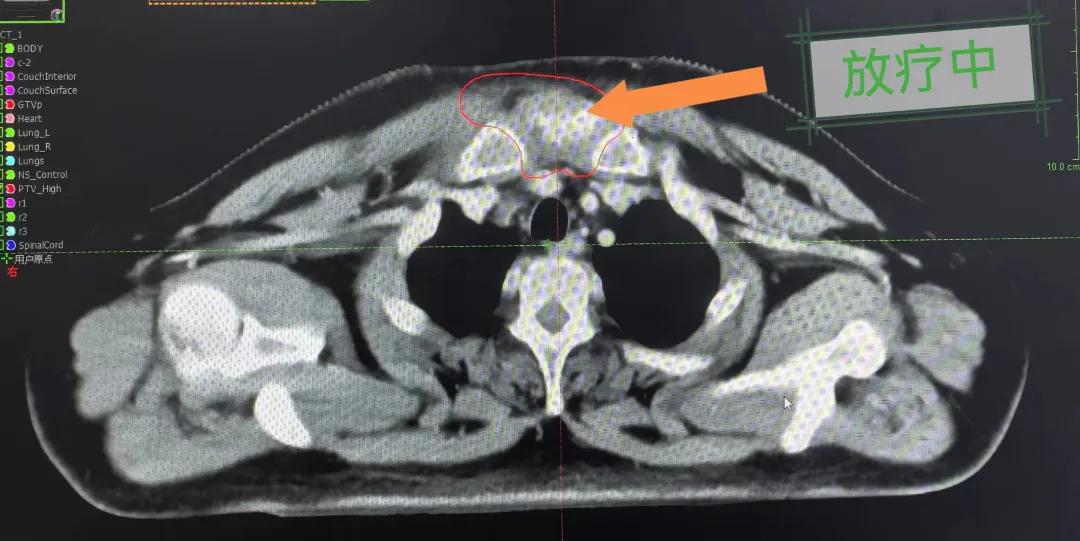 隨后,趙亮主任帶領放療團隊以最快的速度完成了患者的放射治療計劃,在保證放療精準打擊腫瘤的同時,利用先進的三維立體精確放療技術,最大限度的避免心臟、肺部的損傷發(fā)生,整體治療精準度達到1mm以內(nèi)。經(jīng)過10次的放射治療后,患者疼痛已明顯減輕,胸部腫物肉眼可見的縮小,患者及家屬臉上終于露出久違的笑臉。