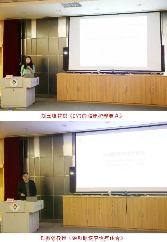 學(xué)術(shù)會(huì)上,宋燕教授、苗仁英教授、楊博教授、付一群教授、牛曉陽(yáng)教授、劉衛(wèi)萍教授、劉玉峰教授、漯河醫(yī)專(zhuān)二附院神經(jīng)外科副主任振強(qiáng)教授、漯河醫(yī)專(zhuān)二附院急診外科副主任張曉光教授、漯河醫(yī)專(zhuān)二附院急診外科程書(shū)強(qiáng)教授等分別圍繞《頸動(dòng)脈狹窄的指南解讀》《淺談?lì)i動(dòng)脈狹窄的外科治療一術(shù)式選擇的進(jìn)階之路》《下肢動(dòng)脈硬化閉塞癥腔內(nèi)治療策略及病例分享》《靜脈曲張的微創(chuàng)化診療》《VTE防控體系構(gòu)建及病例分享》《DVT的臨床護(hù)理要點(diǎn)》《頸動(dòng)脈狹窄治療體會(huì)》《頸深淋巴-靜脈吻合術(shù)治療阿爾茨海默病》《下肢深靜脈血栓的診治》等為題,為現(xiàn)場(chǎng)血管外科同仁進(jìn)行了精彩的學(xué)術(shù)報(bào)告。學(xué)術(shù)會(huì)上,與會(huì)觀眾積極圍繞相關(guān)課題向授課專(zhuān)家提問(wèn),并進(jìn)行探討交流,現(xiàn)場(chǎng)始終充滿濃厚的學(xué)術(shù)氛圍。