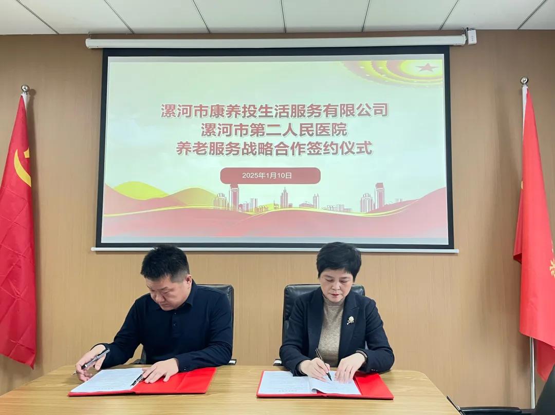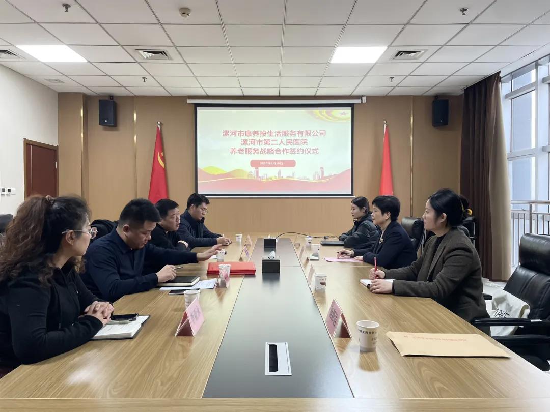 為探索醫(yī)養(yǎng)結合工作新模式,助力我市構建醫(yī)養(yǎng)結合的養(yǎng)老服務體系新路徑,1月10日下午,市二院作為全市首家簽約單位與漯河市康養(yǎng)投公司簽訂醫(yī)養(yǎng)戰(zhàn)略合作協(xié)議,為漯河地區(qū)智慧養(yǎng)老的發(fā)展注入了新活力。市民政局養(yǎng)老科科長趙煒,市康養(yǎng)投生活公司董事長靳元浩,市二院副院長劉橋、醫(yī)聯(lián)體辦公室副主任張靜出席簽約儀式。