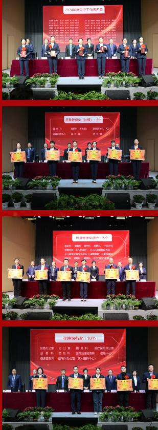 大會對2024年表現(xiàn)優(yōu)秀的集體和個人進行了隆重表彰,依次頒發(fā)了“年度工作先進工作者”“護理質(zhì)量管理獎”“醫(yī)療質(zhì)量管理獎”“優(yōu)質(zhì)服務獎”“目標管理先進科室”和“特殊貢獻獎”。獲獎代表們臉上洋溢著自豪的笑容依次上臺領獎,臺下的陣陣掌聲,更是獻給榜樣的最高禮贊。