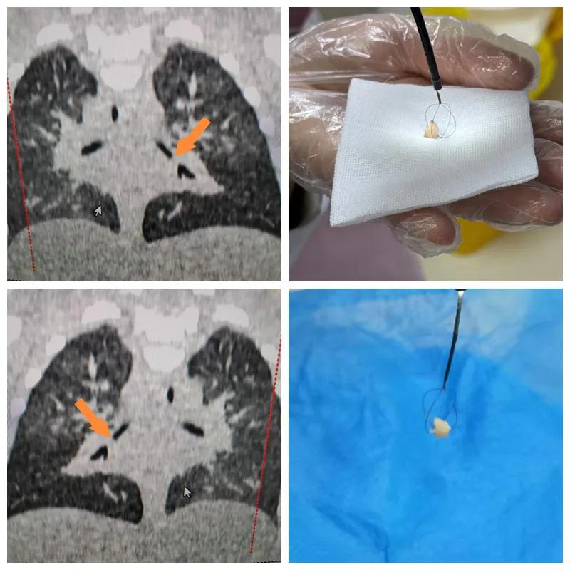 1月9日,1歲10個(gè)月的患兒王某,因“吃核桃時(shí)出現(xiàn)嗆咳3小時(shí)”來院就診,查CT確診“左主支氣管內(nèi)異物”。